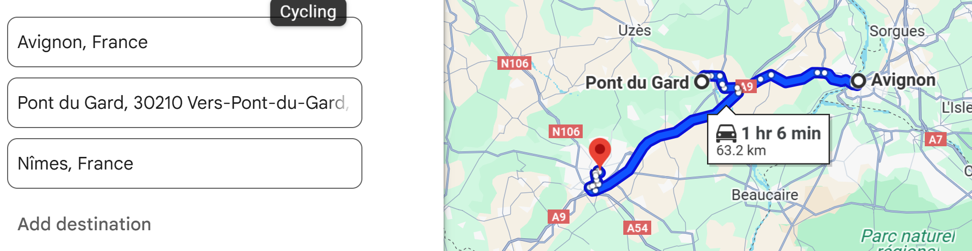 On Day 3, we drove west from Avignon, setting out on a journey through some of the best-preserved Roman heritage sites in France. Our first stop was Pont du Gard, an awe-inspiring ancient aqueduct bridge that spans the Gardon River—its massive stone arches rising gracefully against the blue sky, a marvel of engineering and beauty. From there, we continued to Nîmes, often called the “French Rome,” where we explored the stunning Arènes de Nîmes, a Roman amphitheater still used for events today, and the elegant Maison Carrée, one of the best-preserved Roman temples in the world. Walking through these ancient sites, surrounded by history and golden light, we felt a deep connection to the past, as if Provence had quietly kept these wonders waiting just for us.